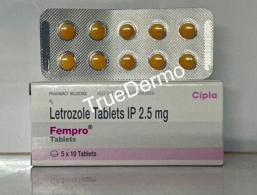 Fempro is a generic brand for the medication letrozole, which belongs to a class of medications called aromatase inhibitors. It is used to treat certain types of breast cancer in postmenopausal women. Letrozole works by blocking the action of an enzyme called aromatase, which is responsible for converting androgens (male hormones) into estrogens (female hormones). By blocking this conversion, Generic Letrozole can help to lower estrogen levels in the body, which can slow down or stop the growth of breast cancer cells that require estrogen to grow. Buy Generic Letrozole online at TrueDermo. We ship in
